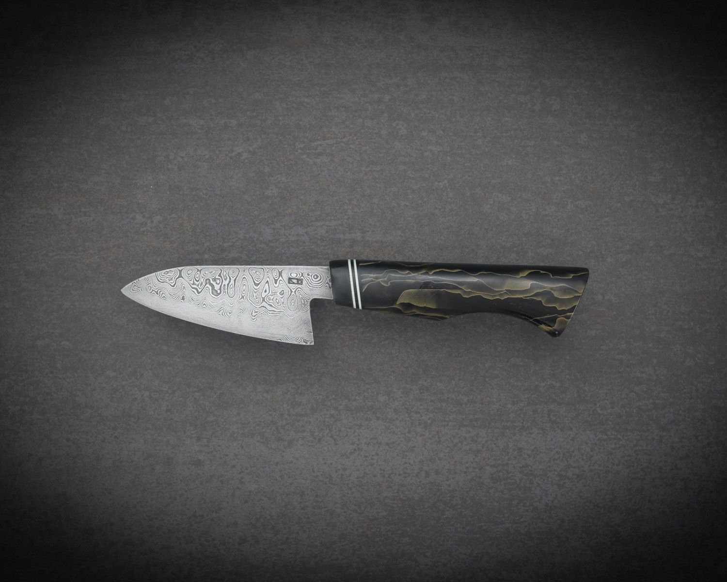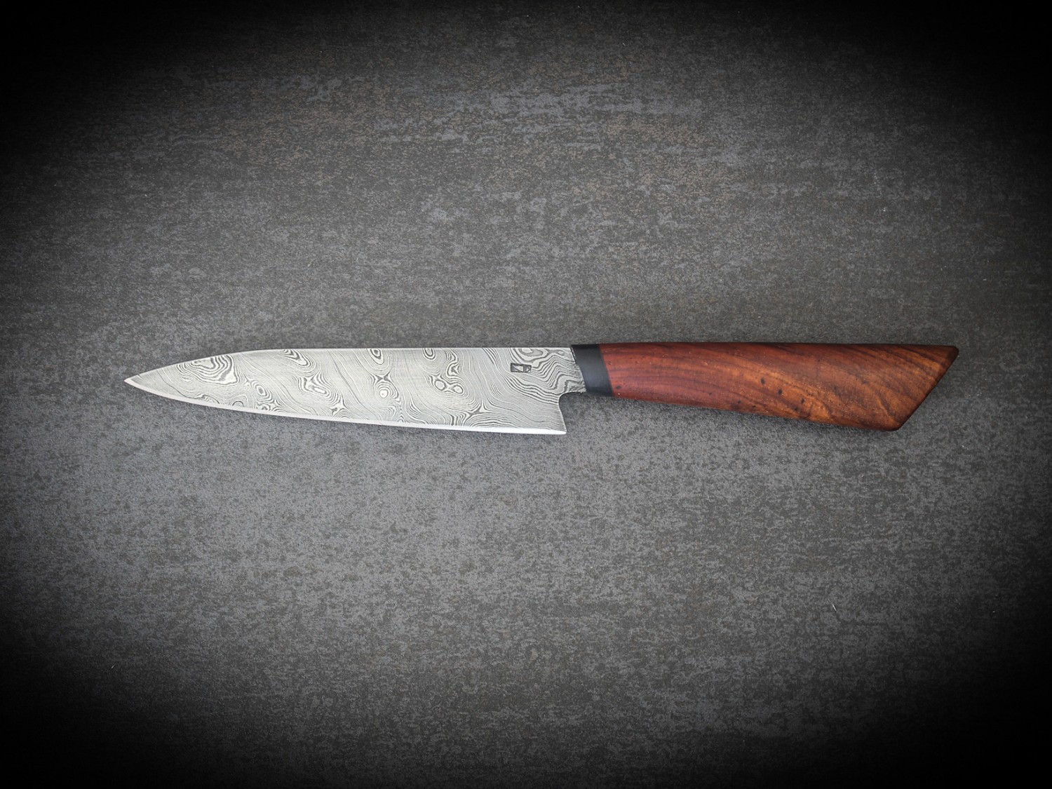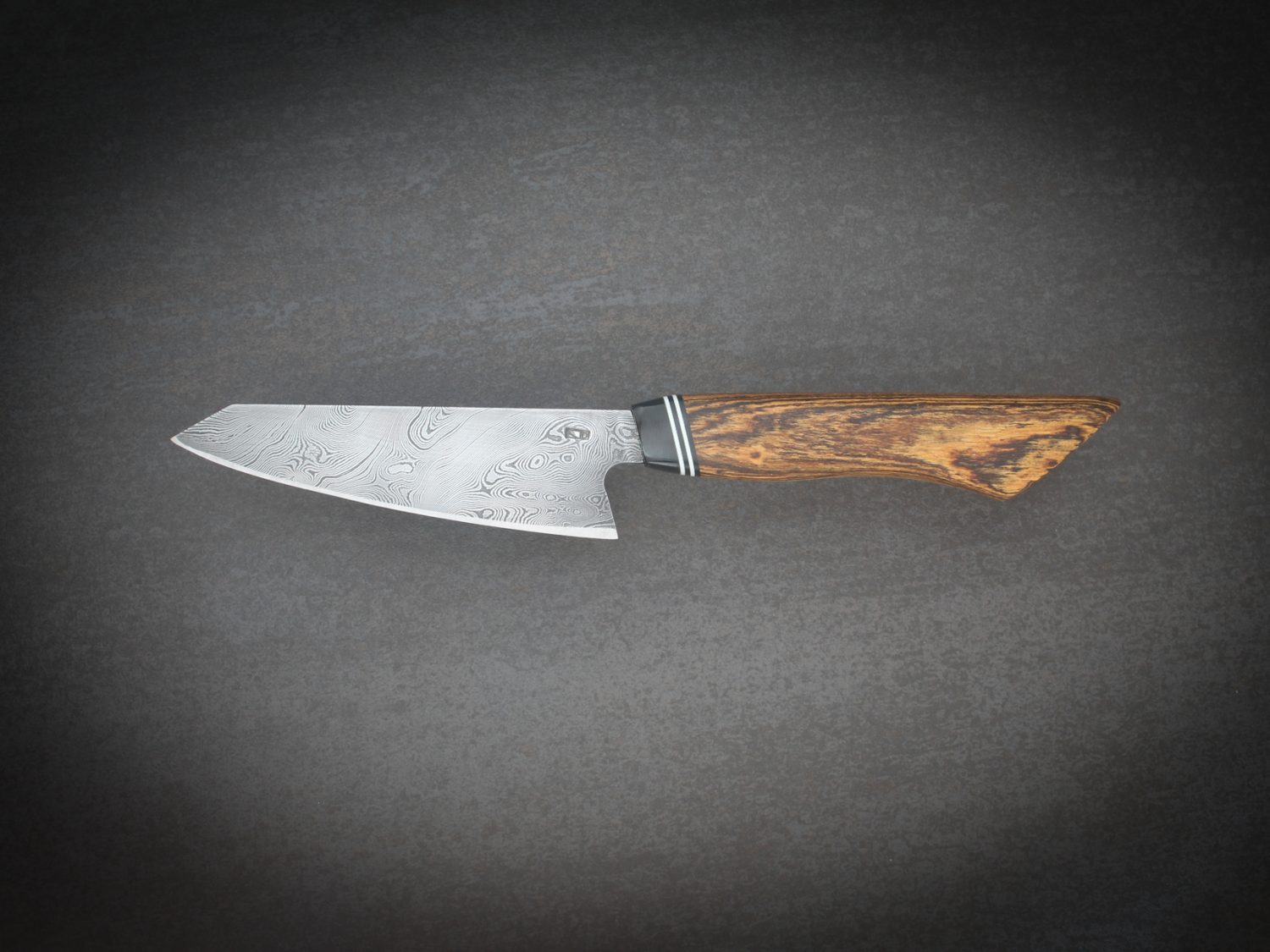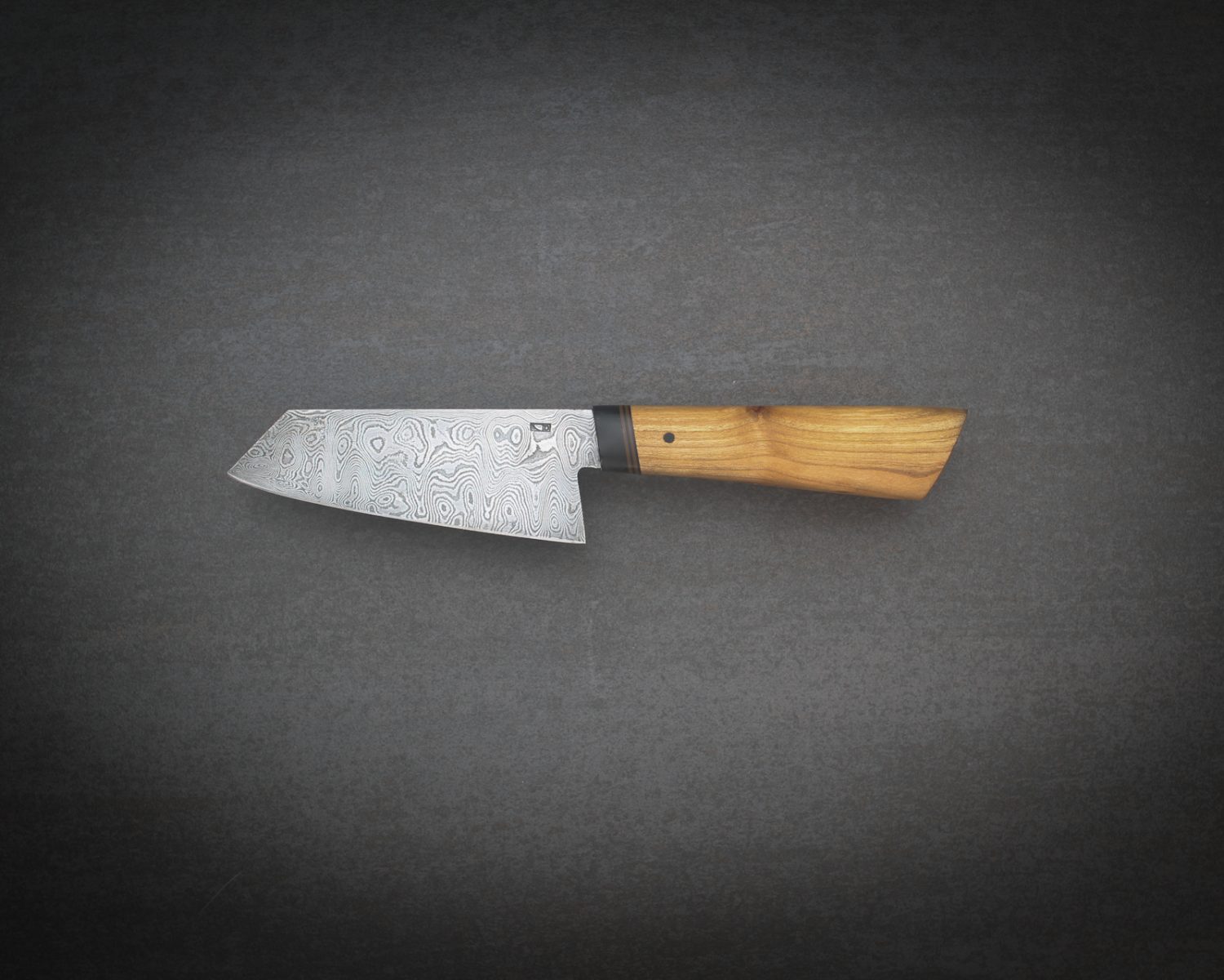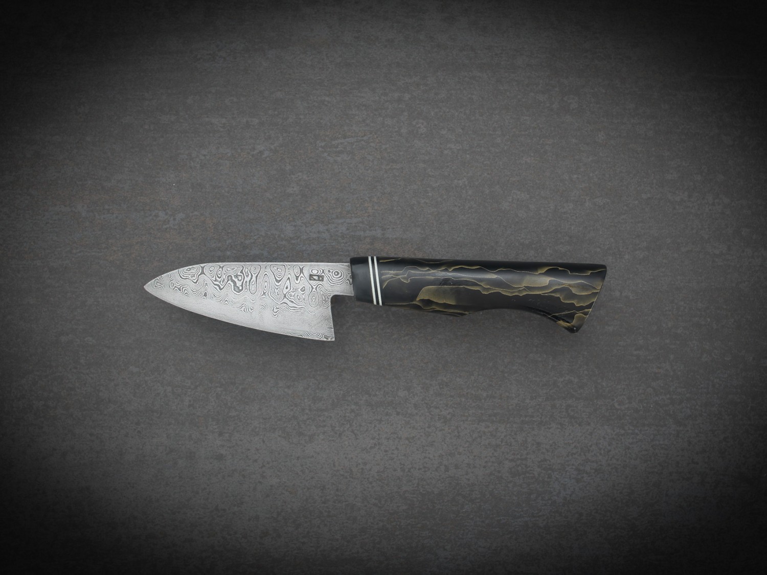 „Damaszenerstahl“ oder kurz „Damast“, der feuergeschweißte, mehrfach gefaltete Schichtstahl ist wegen seiner Eigenschaften und seiner einzigartigen Ästhetik ein ganz besonderer Werkstoff. Diese Schweißverbundstahl-Technik blickt auf eine sehr lange Geschichte zurück. Damaszener Stahl ist sowohl flexibel, als auch widerstandsfähig und hart. Dank der feinen Eigenschaften der verwendeten Carbonstähle, lassen sich die Schneiden sehr dünn und agressiv ausschleifen. Schneidfreudigkeit die man nicht mehr missen möchte.