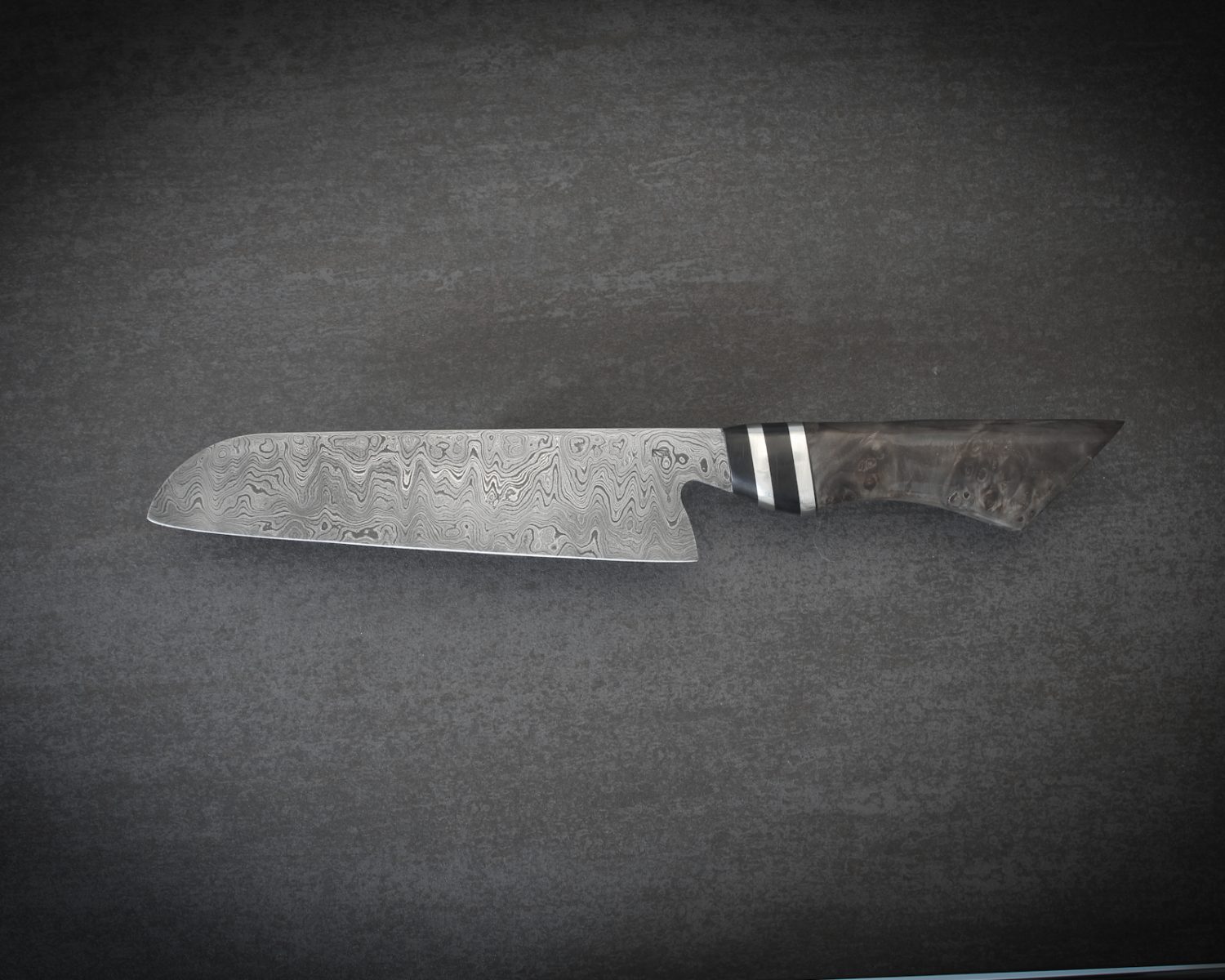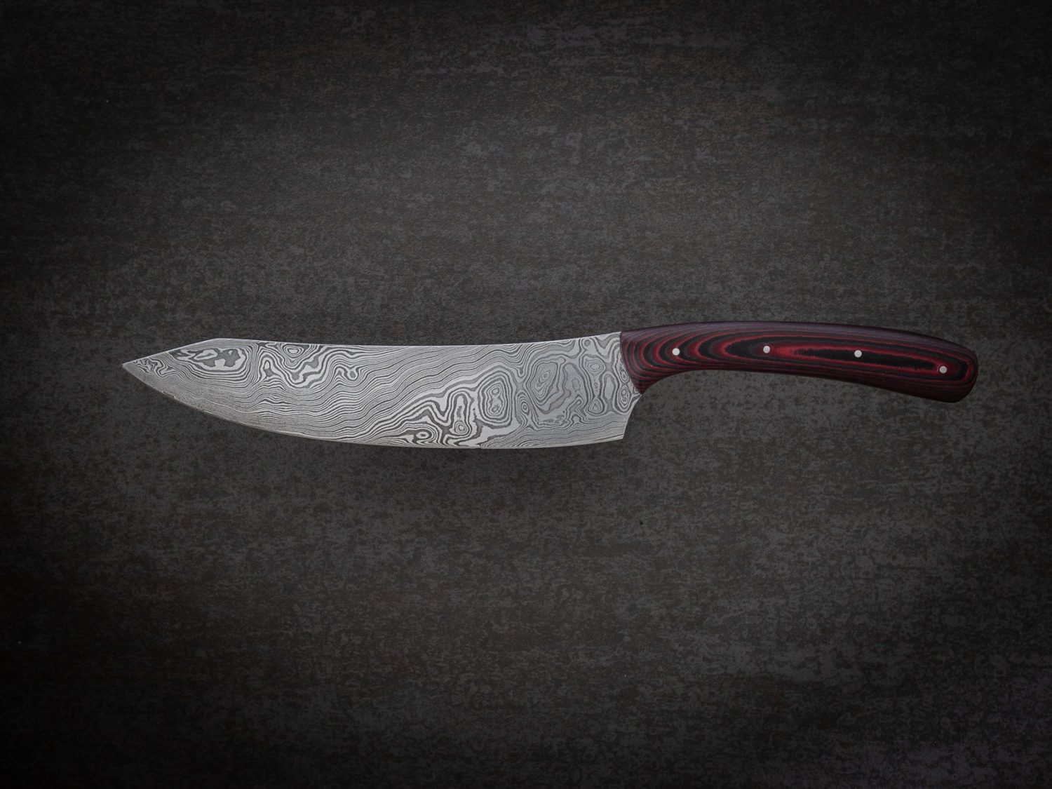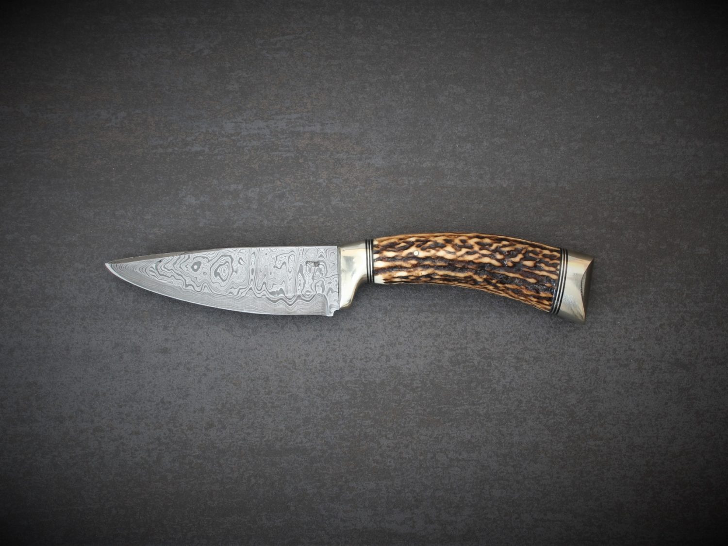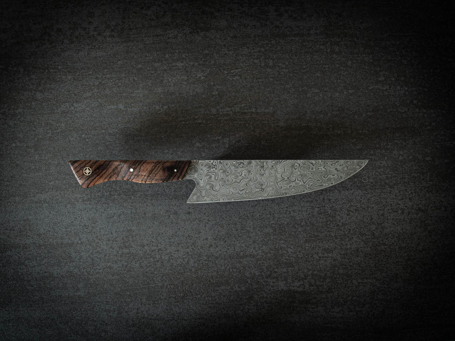 „Damaszenerstahl“ oder kurz „Damast“, der feuergeschweißte, mehrfach gefaltete Schichtstahl ist wegen seiner Eigenschaften und seiner einzigartigen Ästhetik ein ganz besonderer Werkstoff. Diese Schweißverbundstahl-Technik blickt auf eine sehr lange Geschichte zurück. Damaszener Stahl ist sowohl flexibel, als auch widerstandsfähig und hart. Dank der feinen Eigenschaften der verwendeten Carbonstähle, lassen sich die Schneiden sehr dünn und agressiv ausschleifen. Schneidfreudigkeit die man nicht mehr missen möchte.