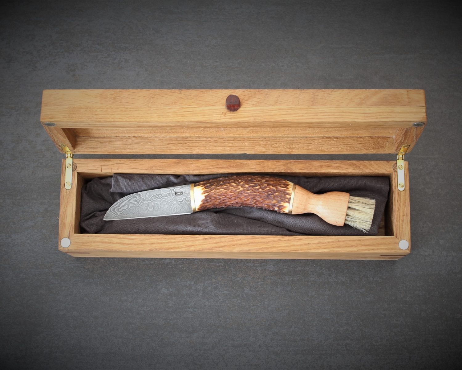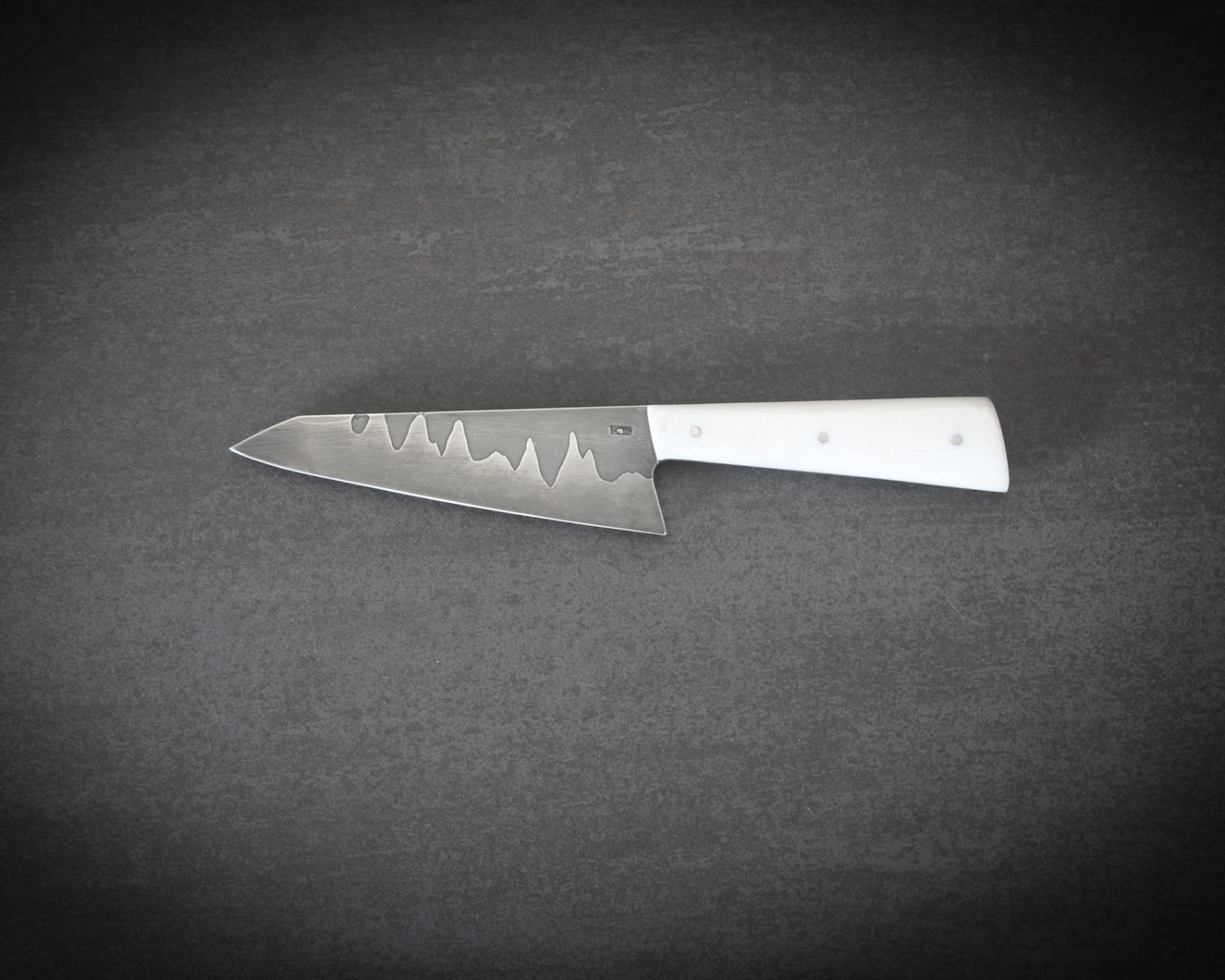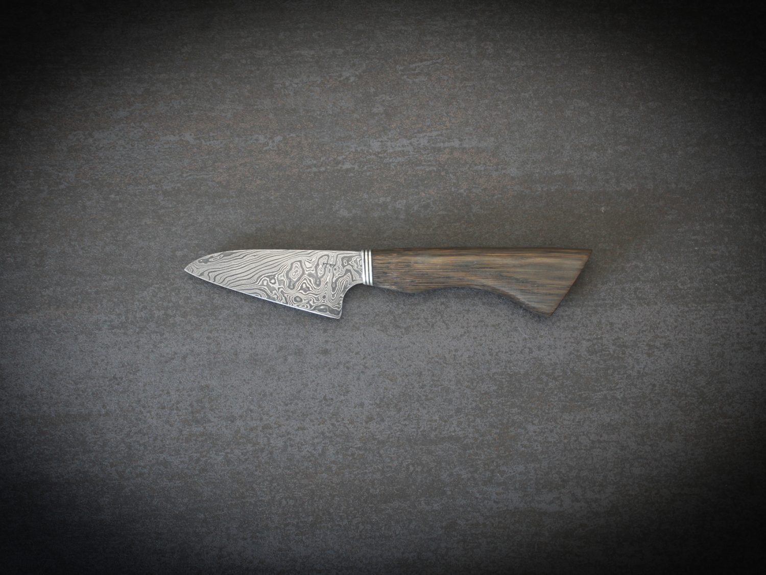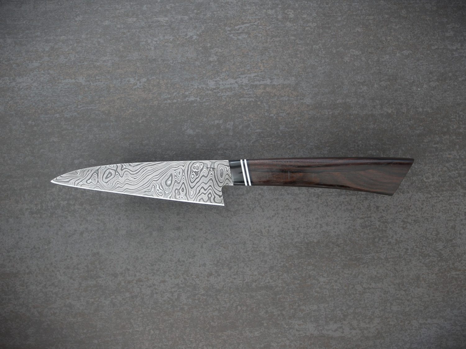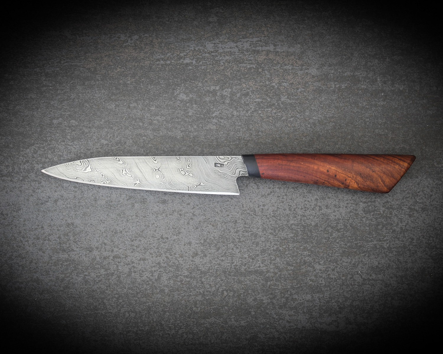 „Damaszenerstahl“ oder kurz „Damast“, der feuergeschweißte, mehrfach gefaltete Schichtstahl ist wegen seiner Eigenschaften und seiner einzigartigen Ästhetik ein ganz besonderer Werkstoff. Diese Schweißverbundstahl-Technik blickt auf eine sehr lange Geschichte zurück. Damaszener Stahl ist sowohl flexibel, als auch widerstandsfähig und hart. Dank der feinen Eigenschaften der verwendeten Carbonstähle, lassen sich die Schneiden sehr dünn und agressiv ausschleifen. Schneidfreudigkeit die man nicht mehr missen möchte.
