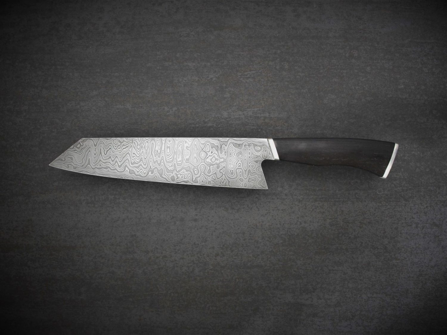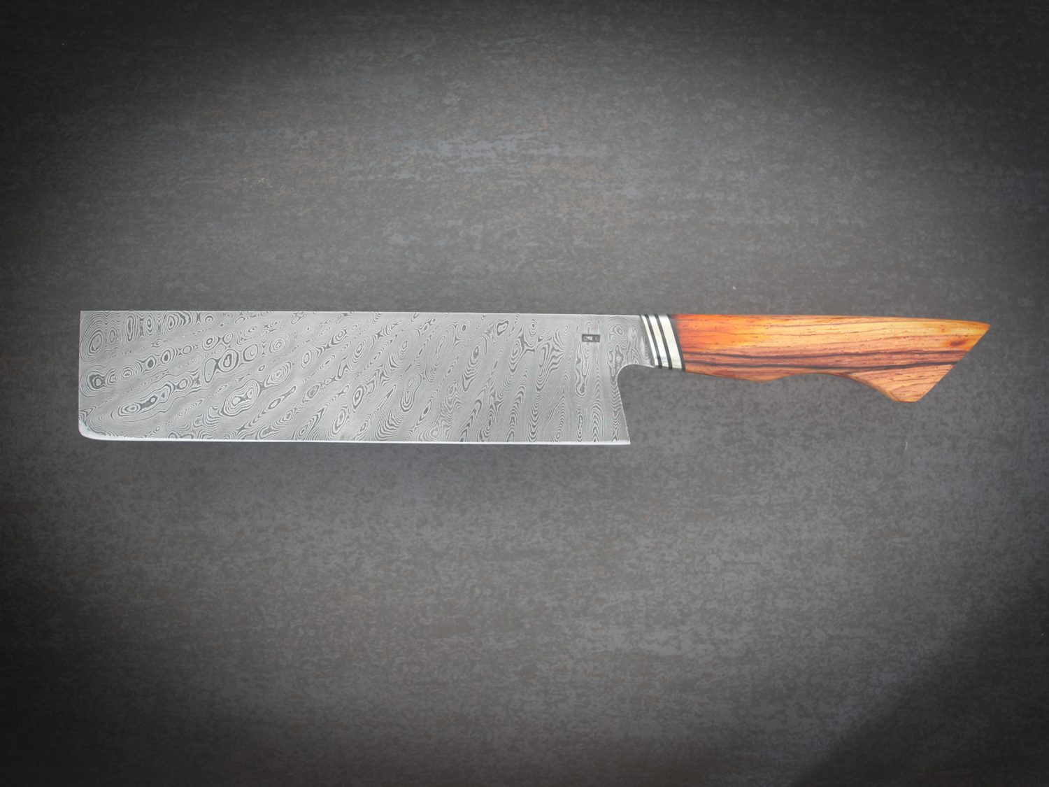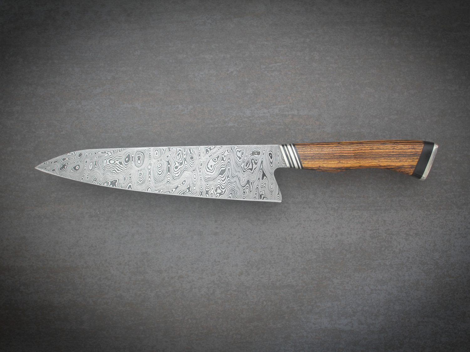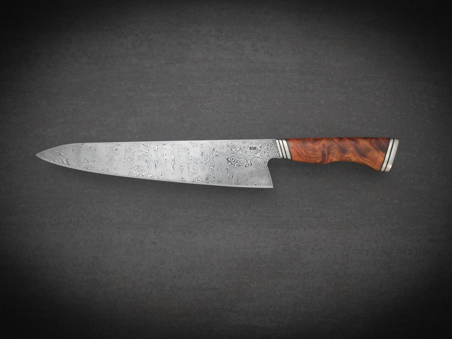 Zum Beispiel: Küchenmesser mit Griffschalen. Standarddamast ca. 150 Lagen. Klingenlänge ca. 20cm. Ab 950.-€