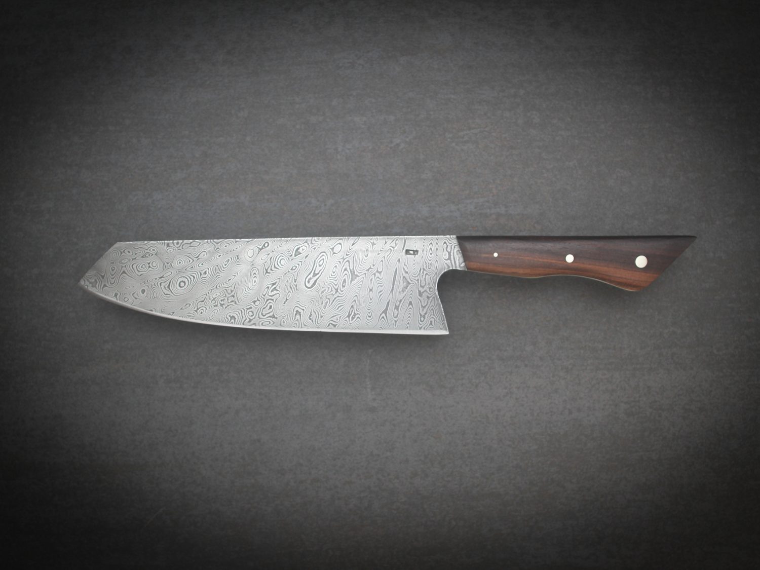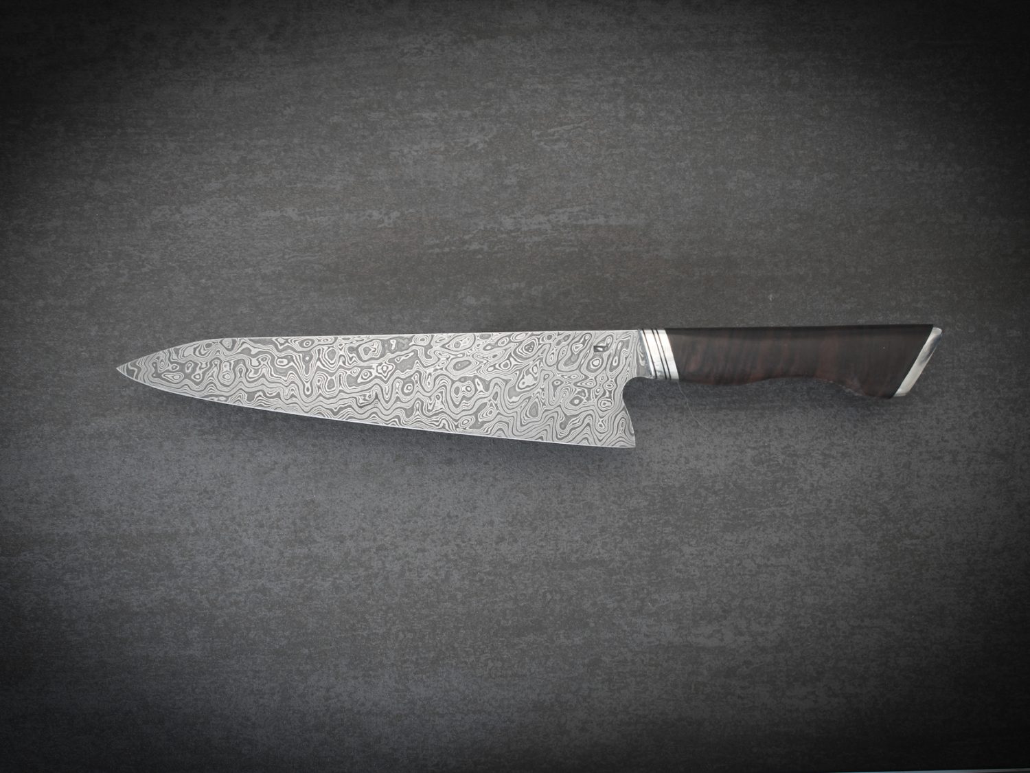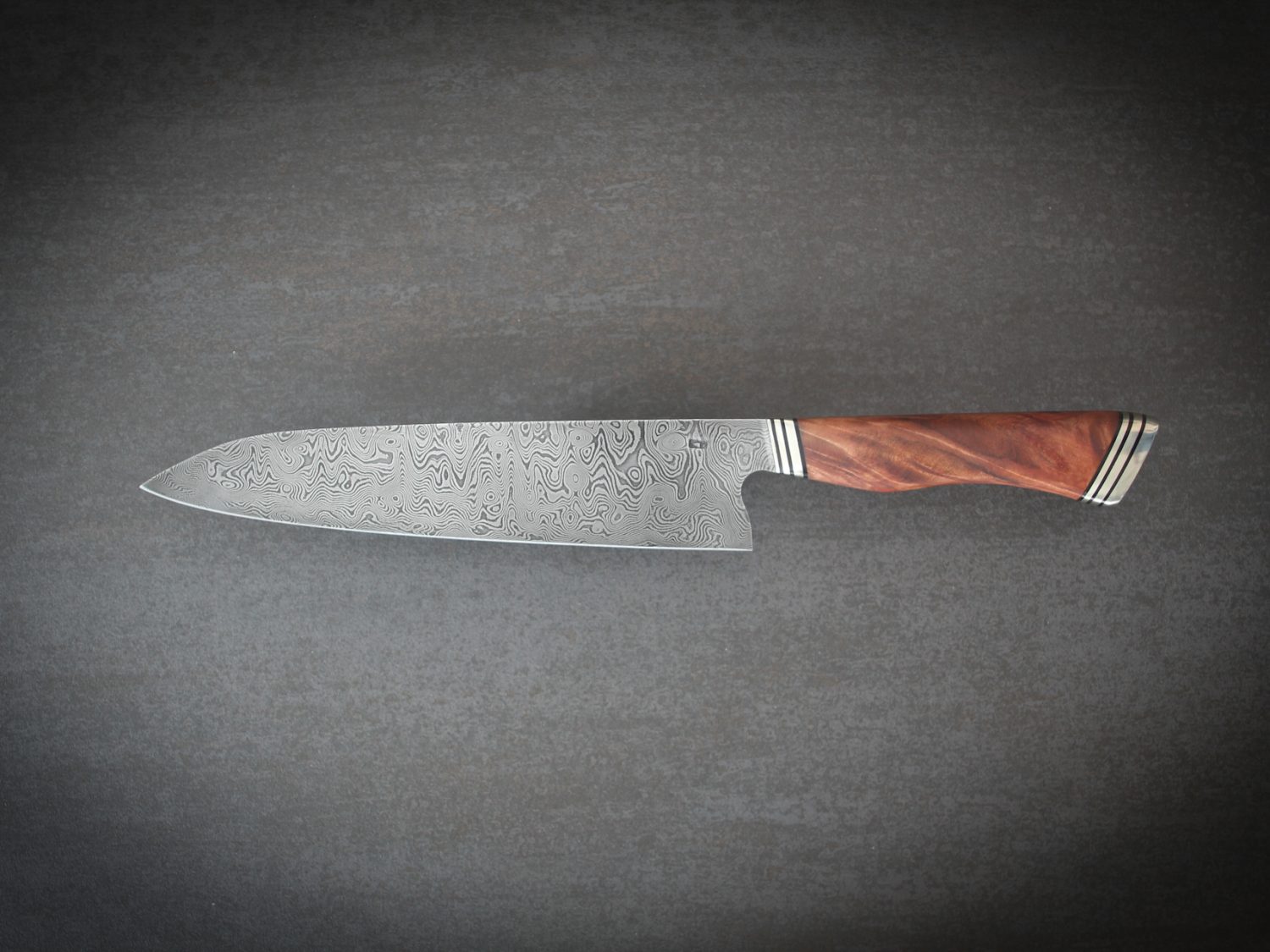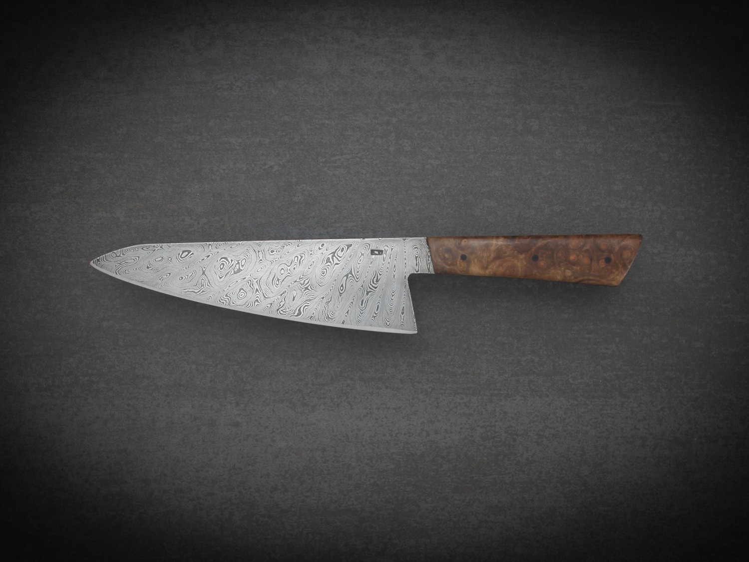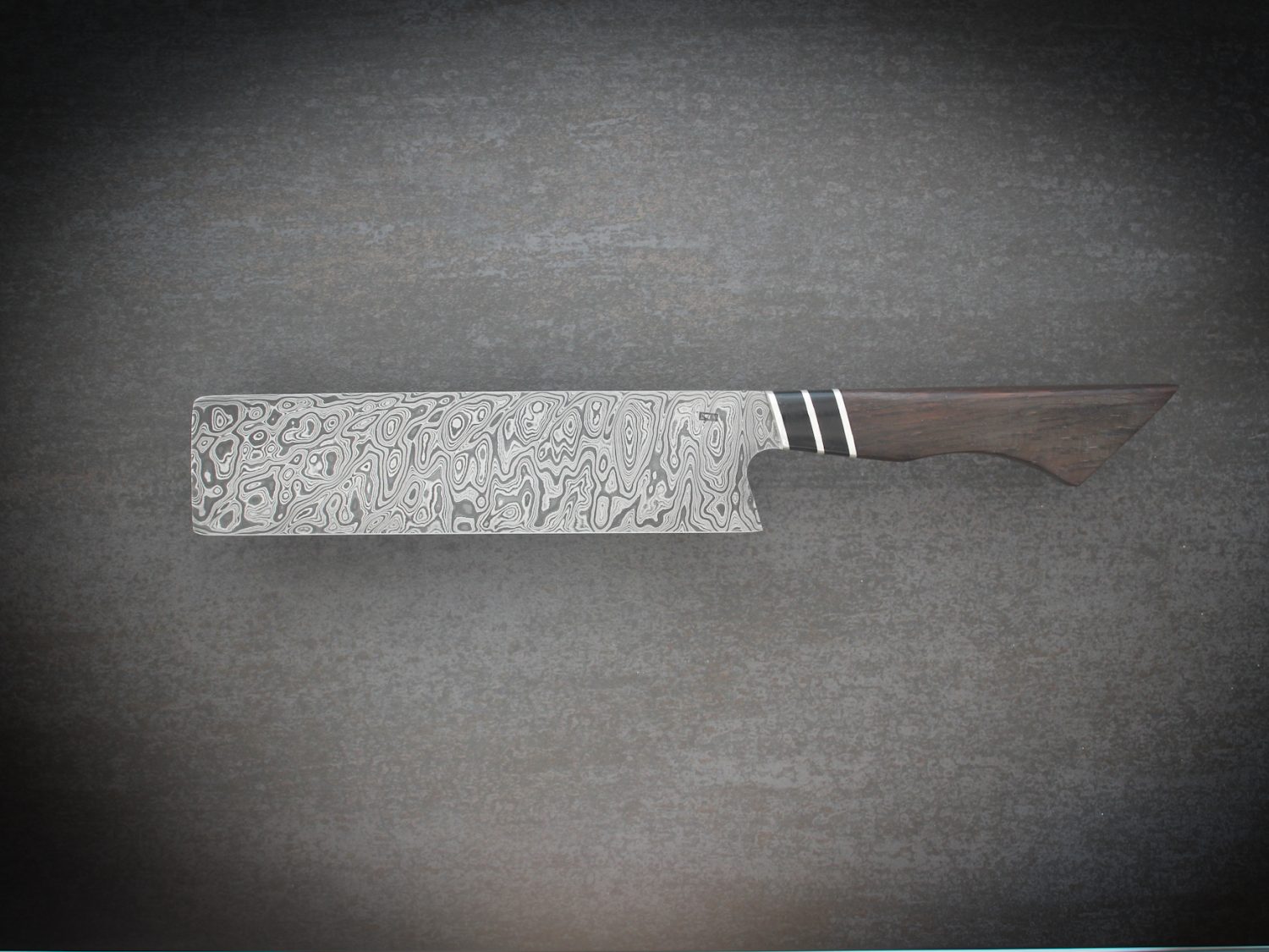 Zum Beispiel: Küchenmesser mit Griffschalen. Standarddamast ca. 150 Lagen. Klingenlänge ca. 20cm. Ab 950.-€