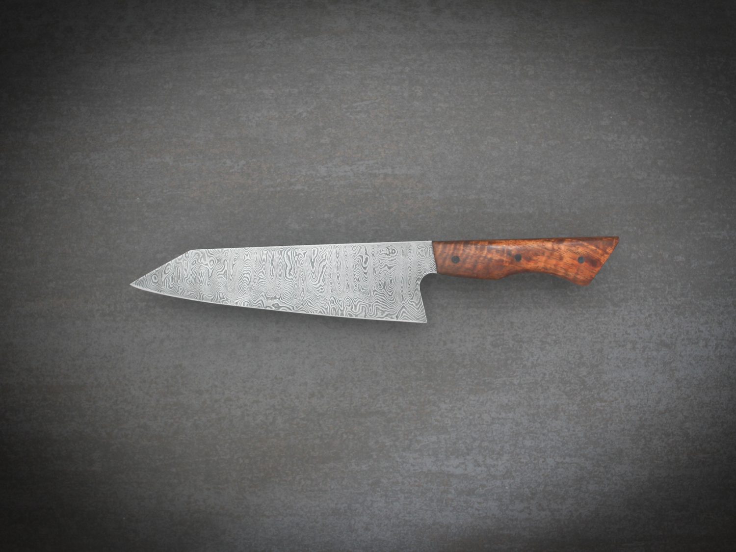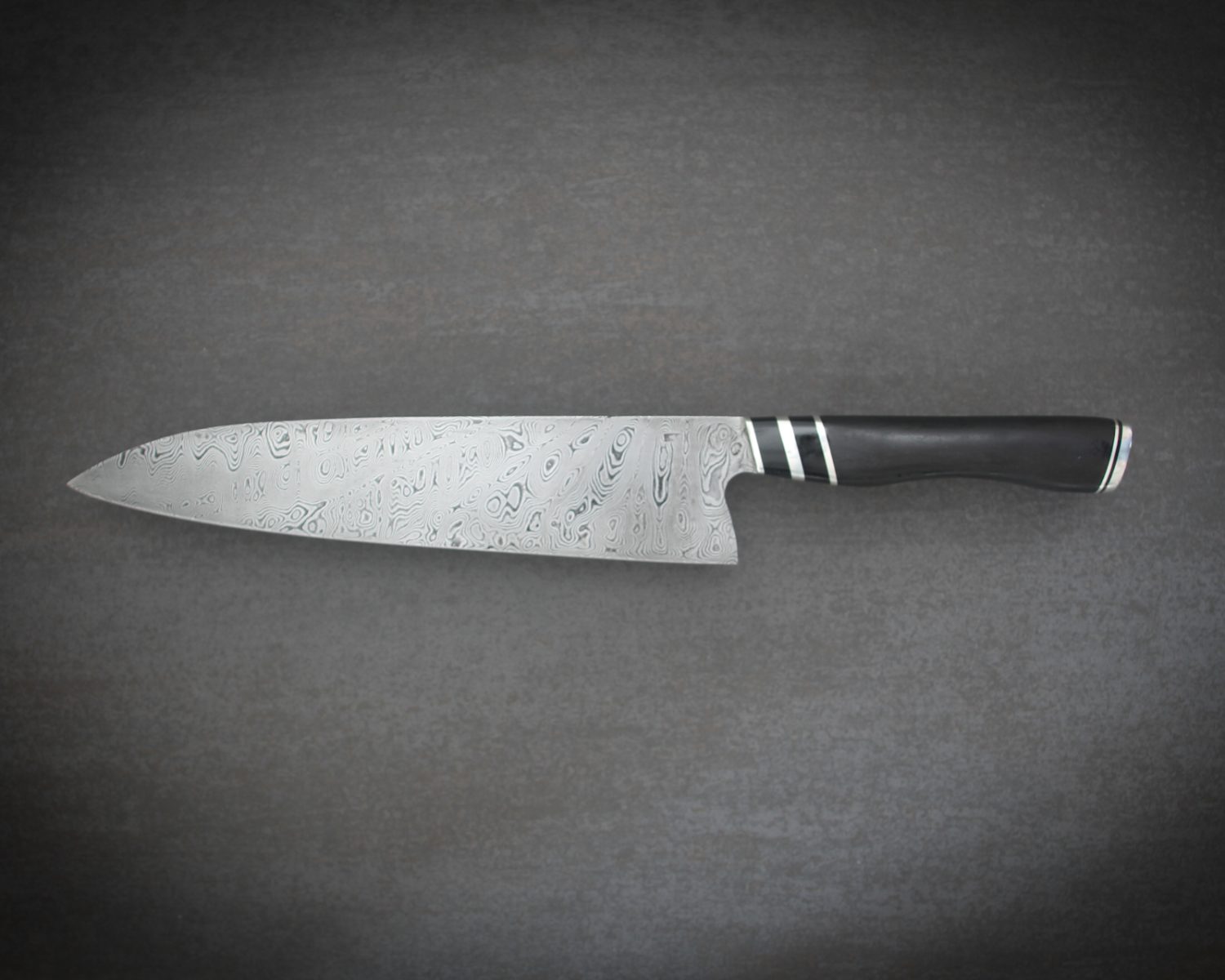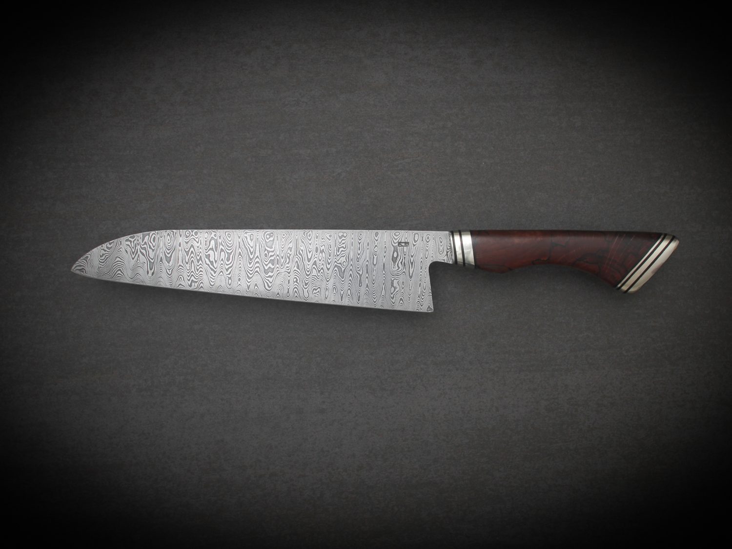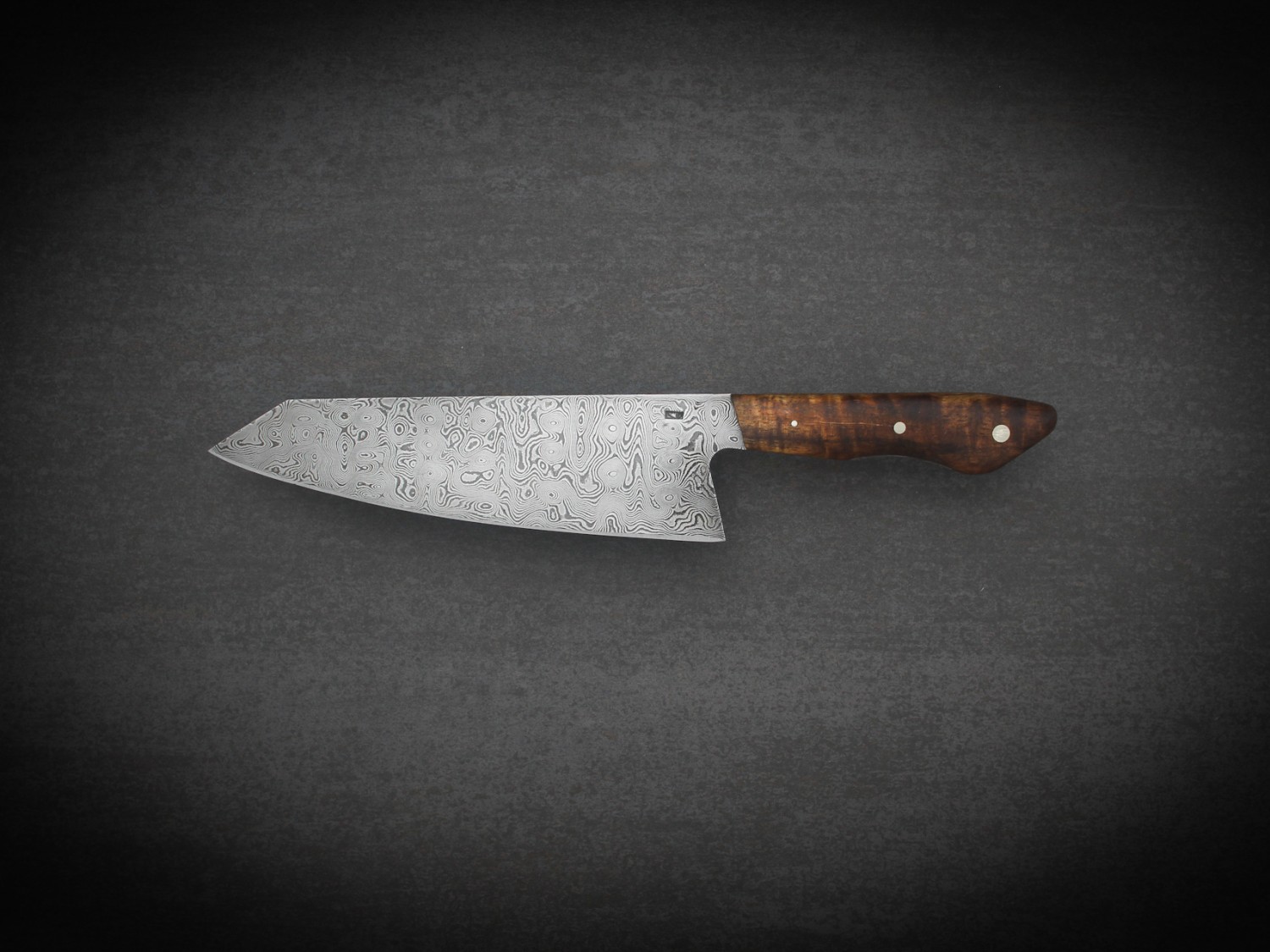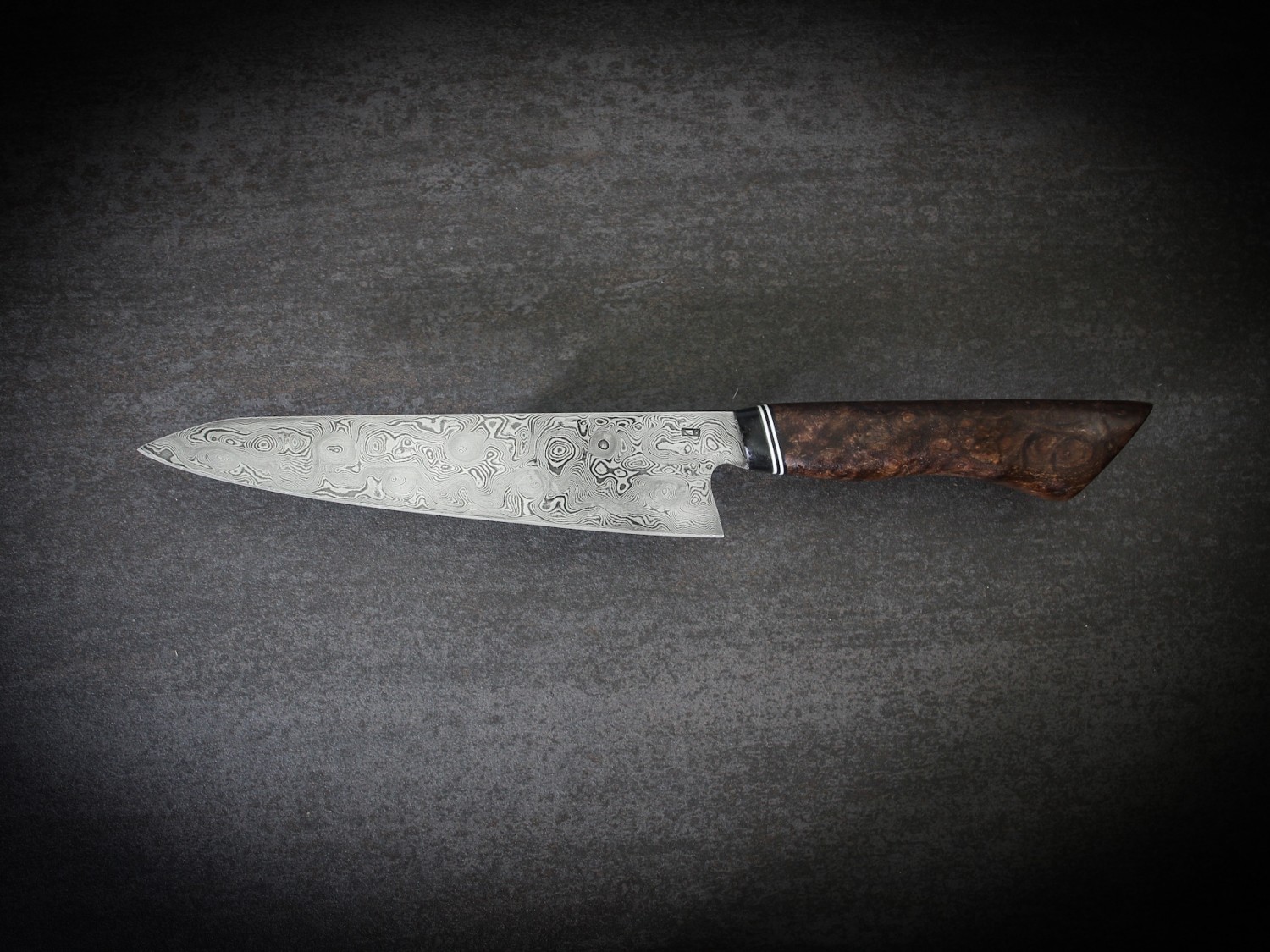 Zum Beispiel: Küchenmesser mit Griffschalen. Standarddamast ca. 150 Lagen. Klingenlänge ca. 20cm. Ab 950.-€
