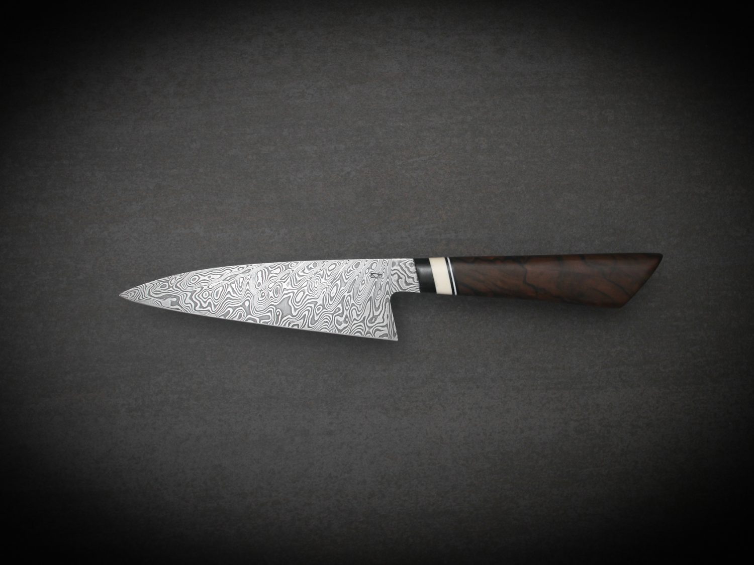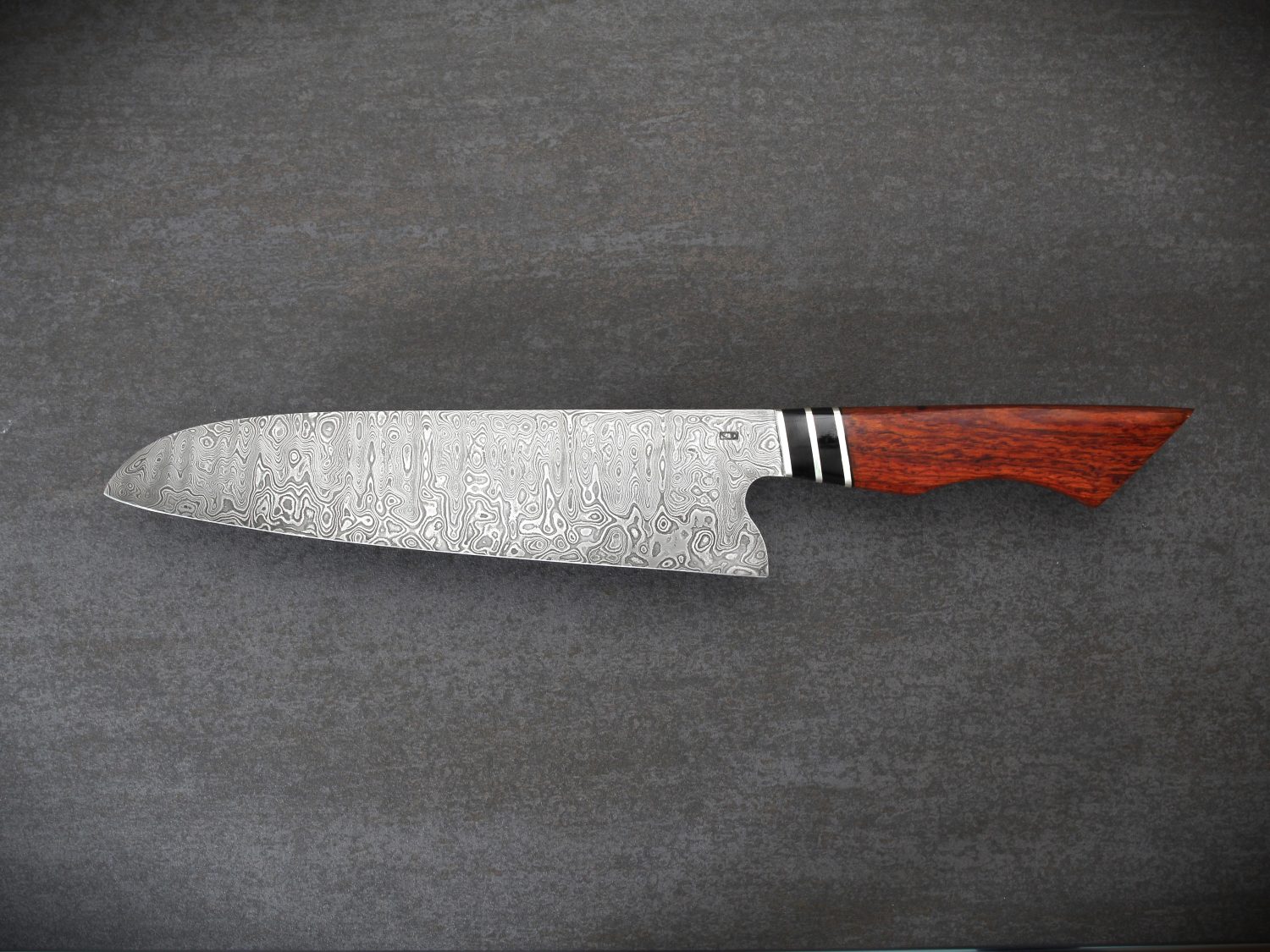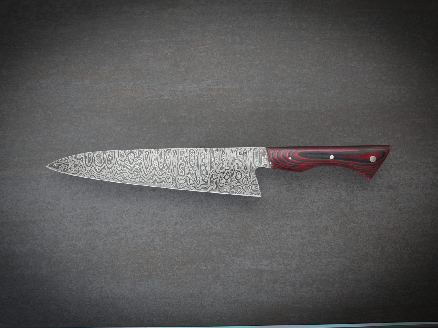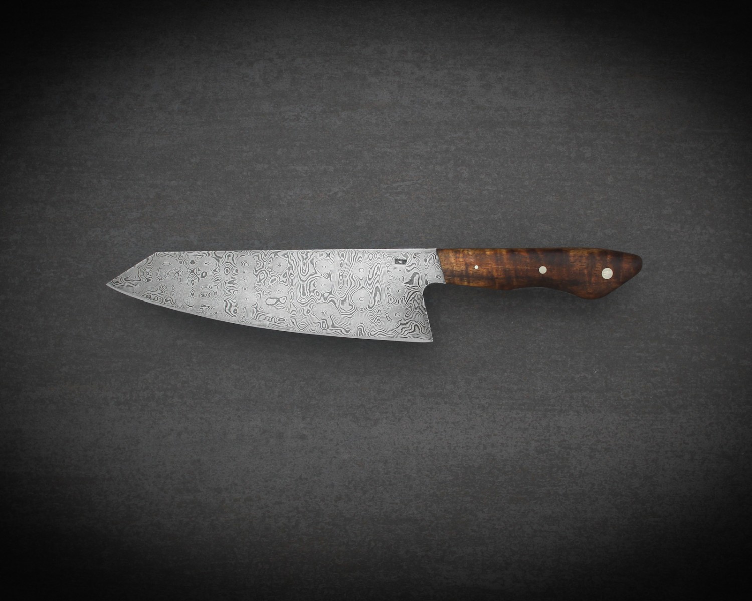 Zum Beispiel: Küchenmesser mit Griffschalen. Standarddamast ca. 150 Lagen. Klingenlänge ca. 20cm. Ab 950.-€