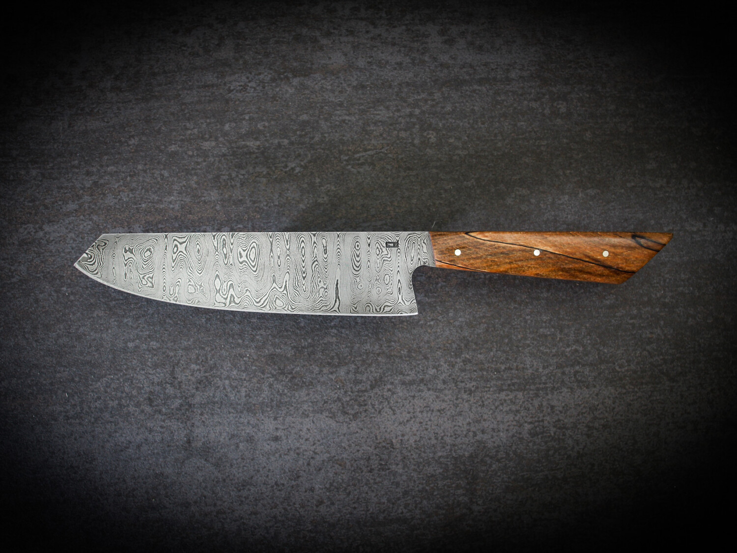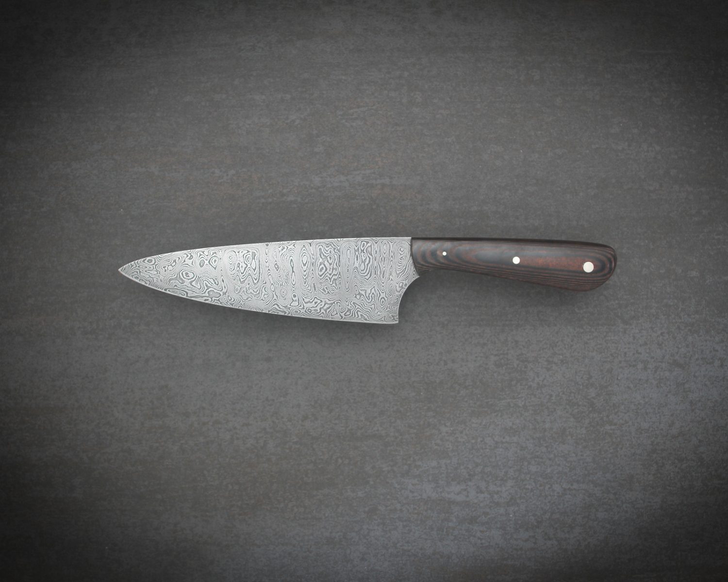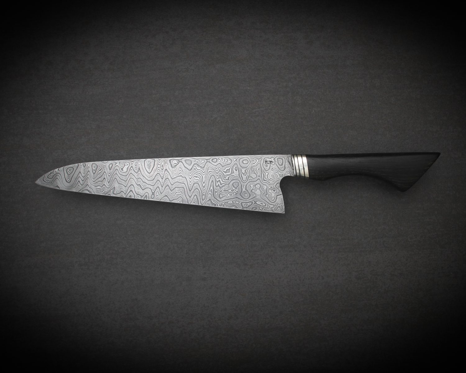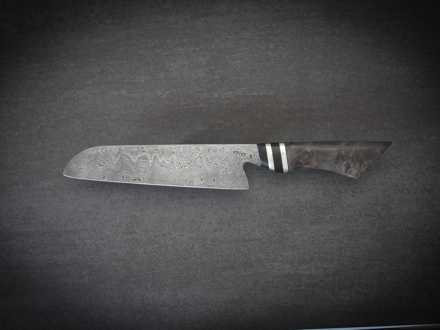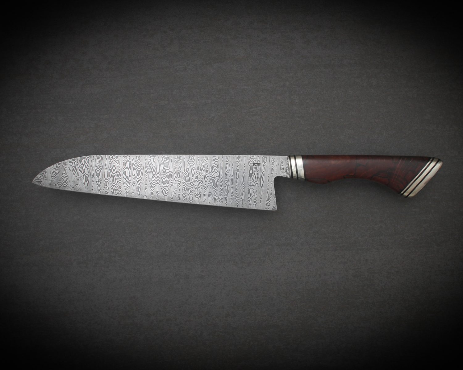 Zum Beispiel: Küchenmesser mit Griffschalen. Standarddamast ca. 150 Lagen. Klingenlänge ca. 20cm. Ab 950.-€